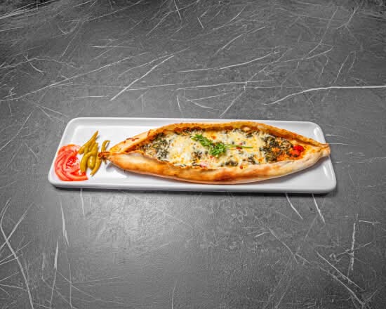 Frisch gebackenes Pide mit geschmolzenem Käse.